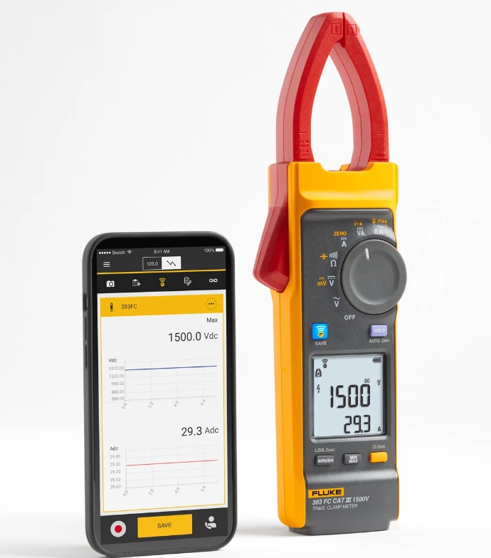 Fluke 393 FC CAT III 1500 V 真均方根電流鉤錶是全球唯一的 CAT III 等級的鉤錶,適合用於 1500 V PV的裝置。