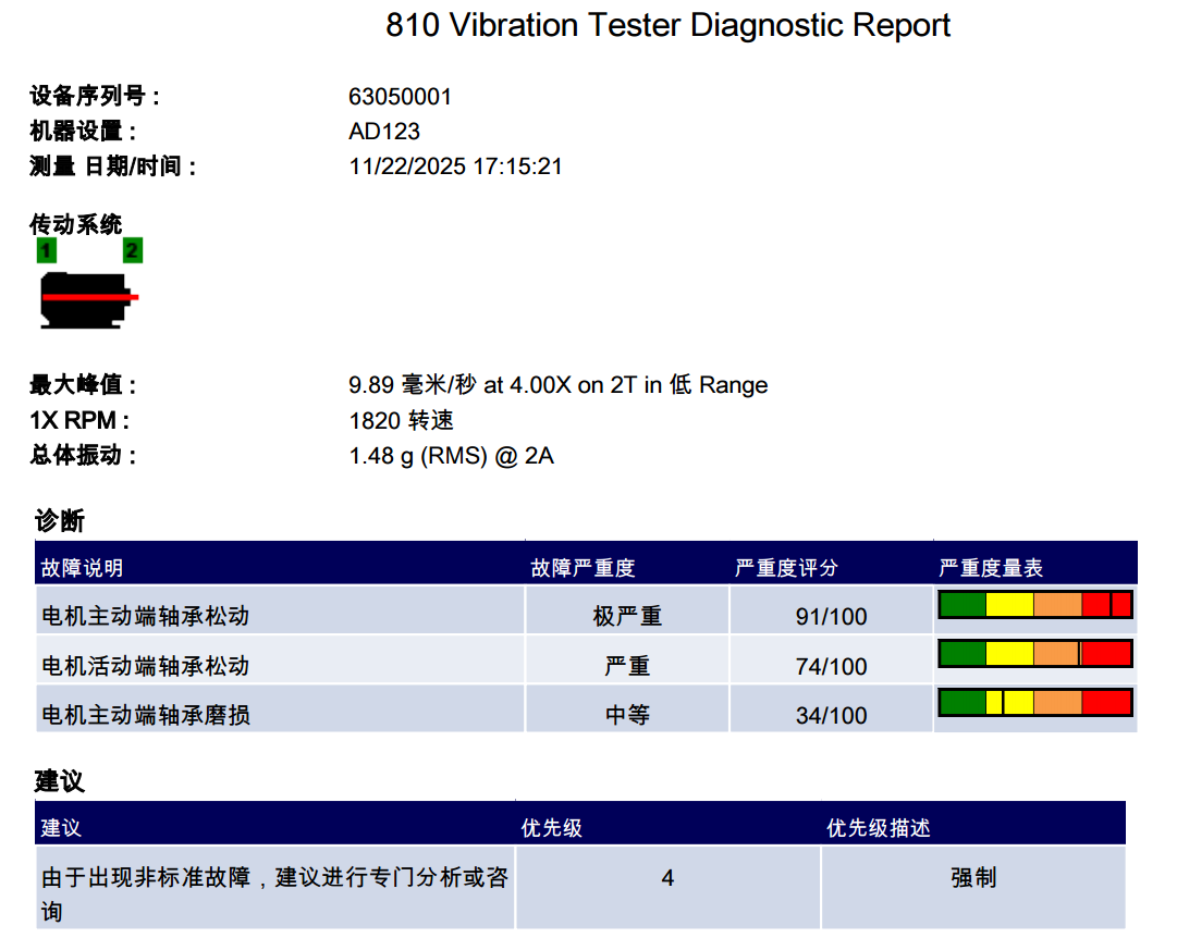 一、電機主動端軸承「極嚴重」鬆動(Severity 91/100)