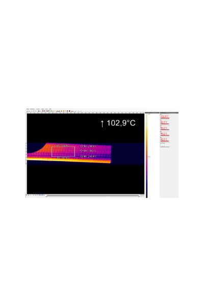 測量裝置由熱像儀和軟體組成,可精確監控三相循環期間的溫度曲線。客戶可以選擇記錄絕對溫度測量值還是相對溫度測量值。憑藉其良好的光學解析度(382 x 288 像素)和出色的40 mK 熱靈敏度,可以非常快速且輕鬆地識別過熱的樣本。